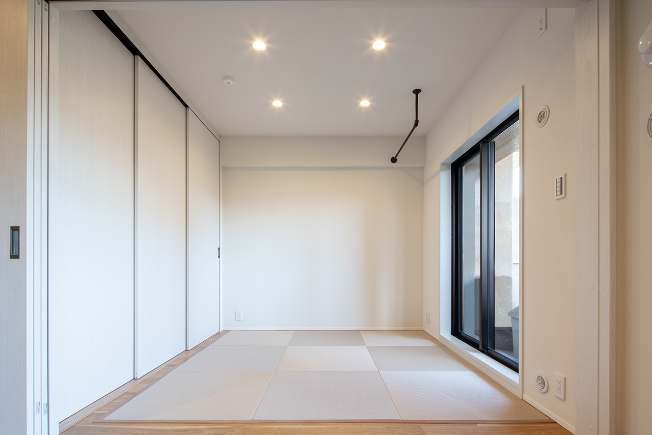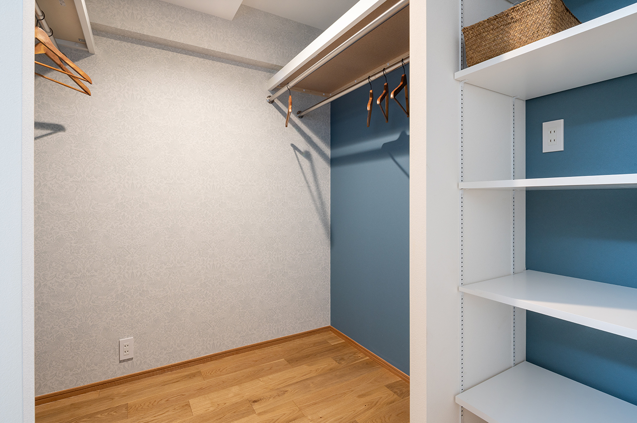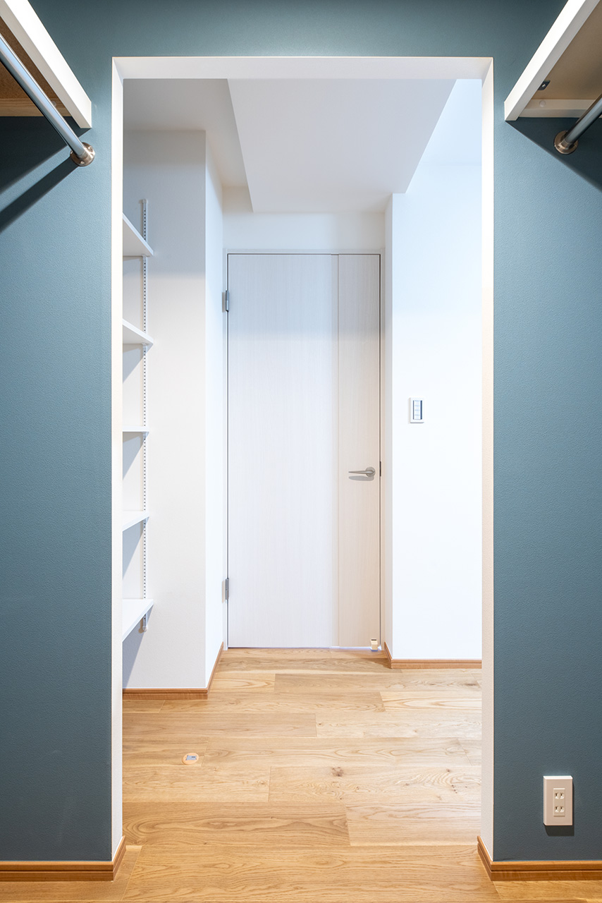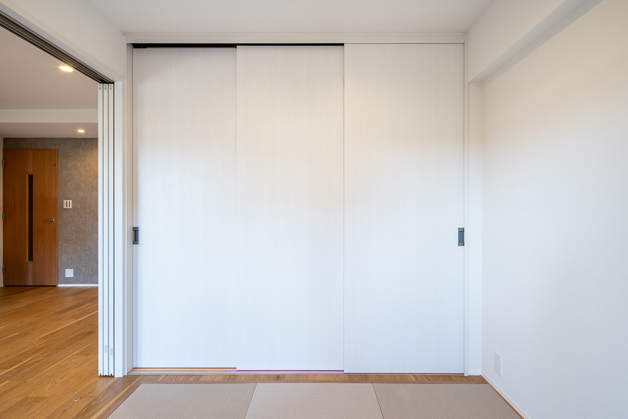 和室を縮小して生まれたスペースと洋室の一部を組み合わせ、約2畳のウォークインクローゼットを新設。洋室側の既存開口を活かしたダイレクトな動線で、収納物が取り出しやすく、気軽に使える空間となりました。リビングからもアクセスでき、普段の片付けもスムーズです。