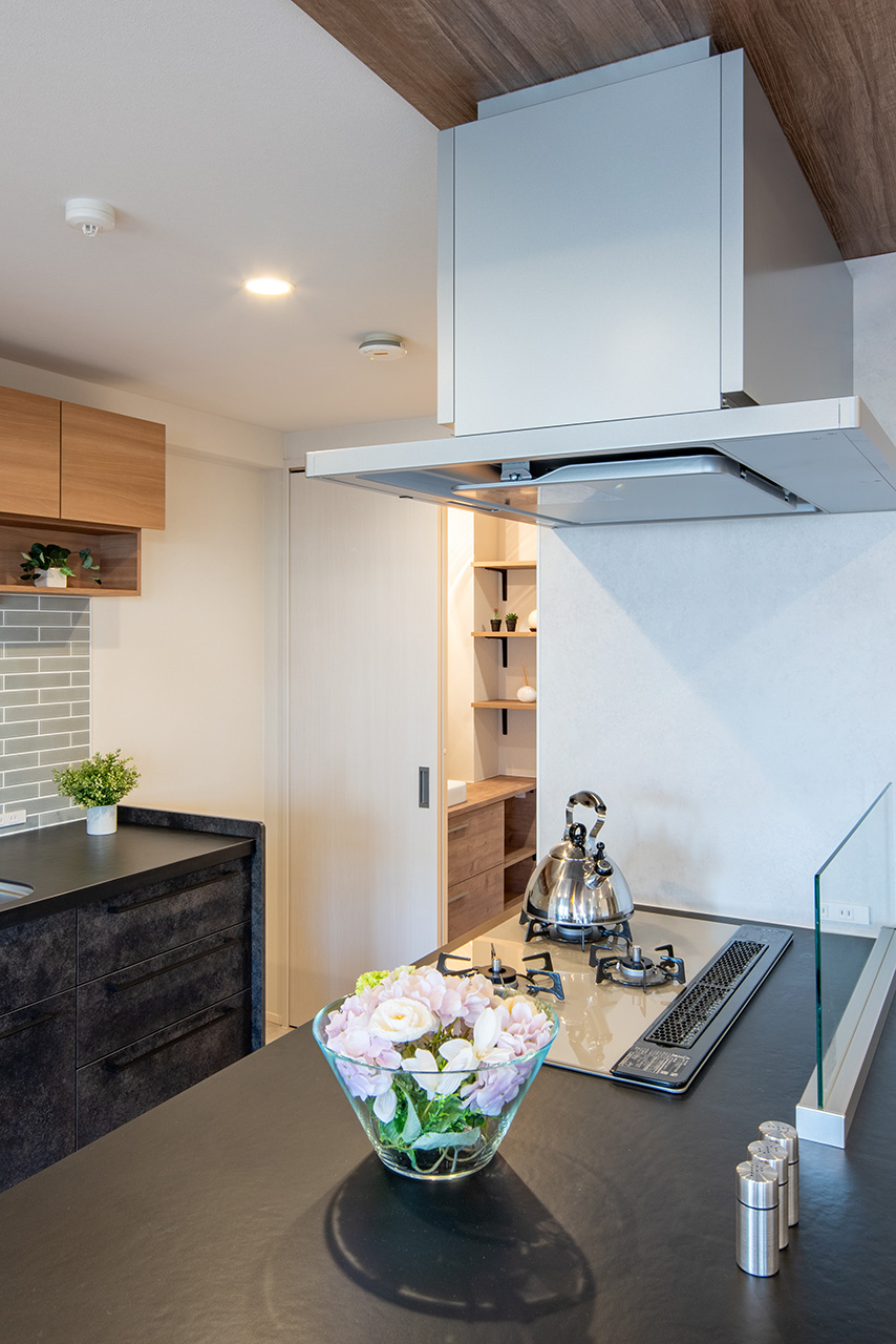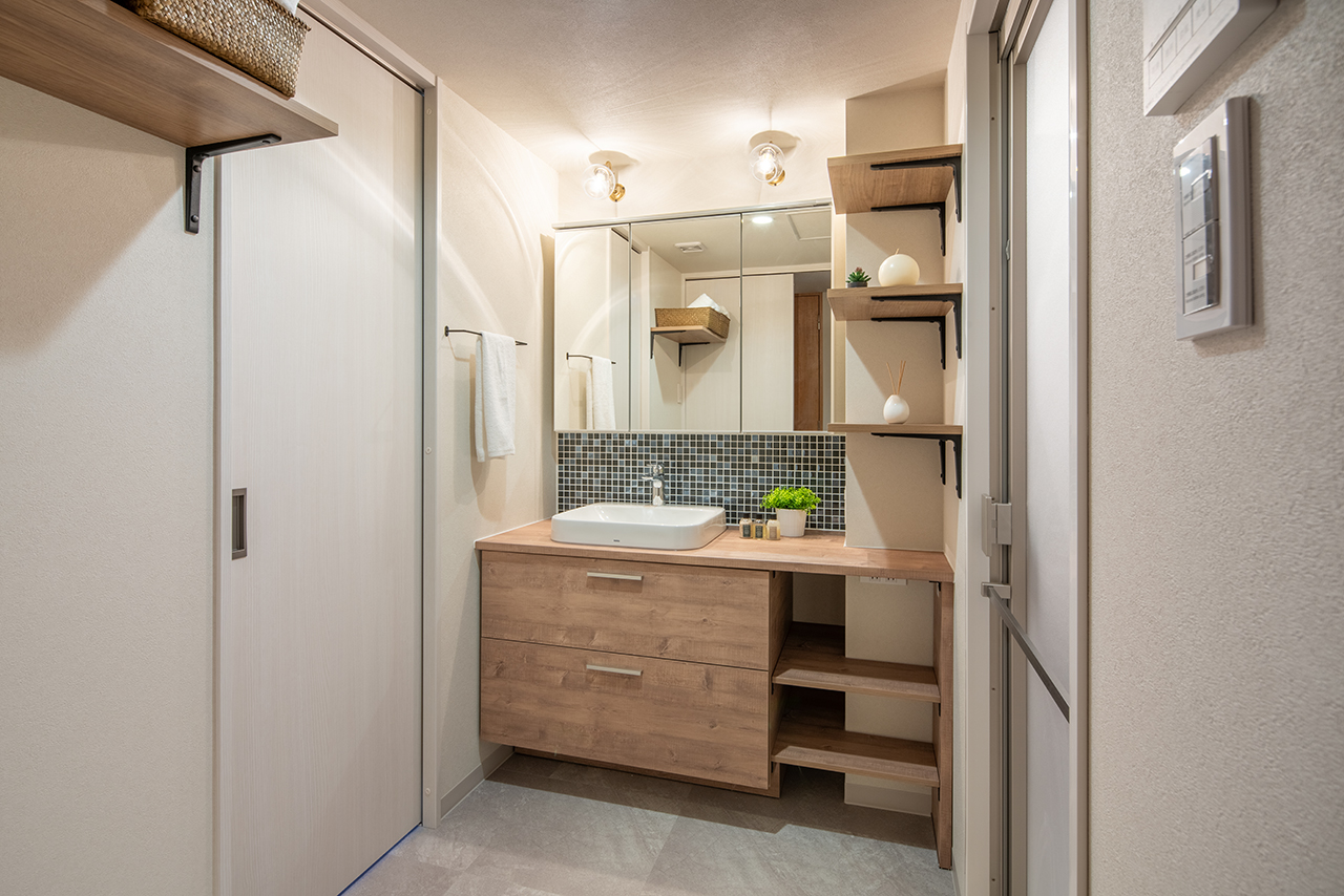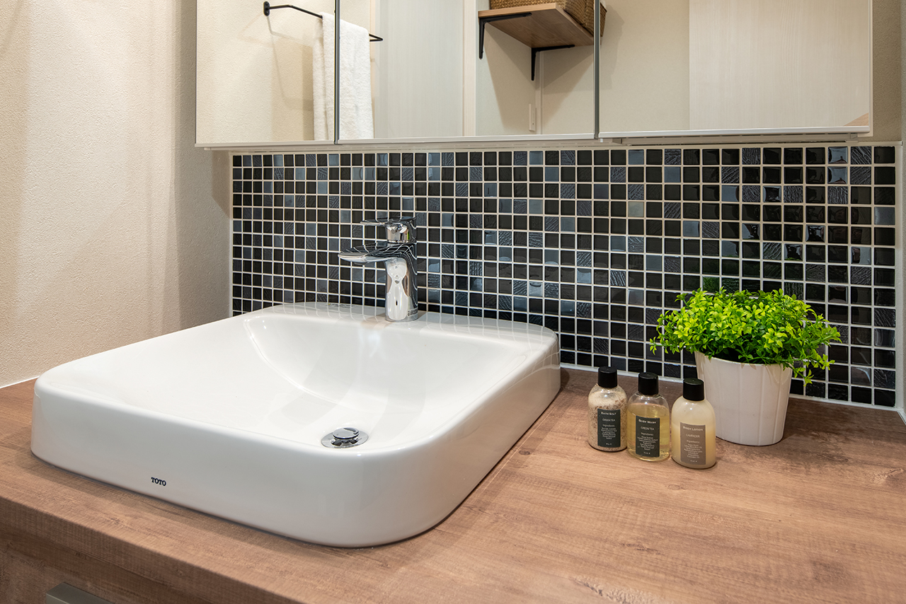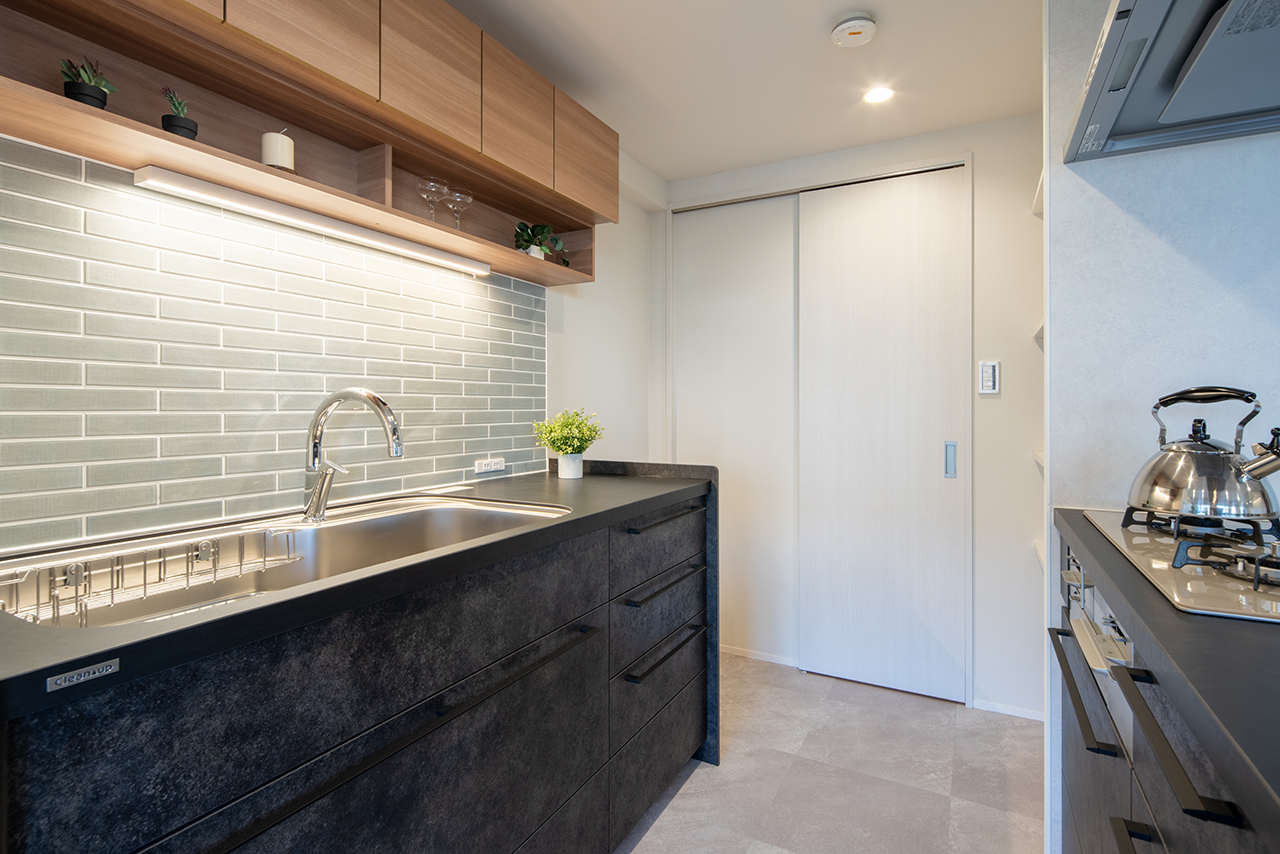 玄関から洗面・浴室を経てキッチンからリビングまでが回遊できる間取りは便利でしたが、L型キッチンによりS字動線が発生し、ダイニングへのアクセスに不便さがありました。そこでキッチンをII型(2列型)に変更。ダイニングまで直線で回遊できるようになり、よりスムーズな家事動線を実現しました。
