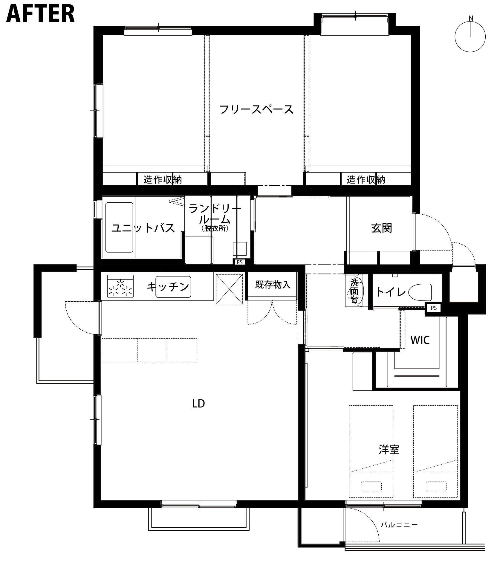 家族のライフスタイルに合わせて使えるフリースペースへと再構築しました。