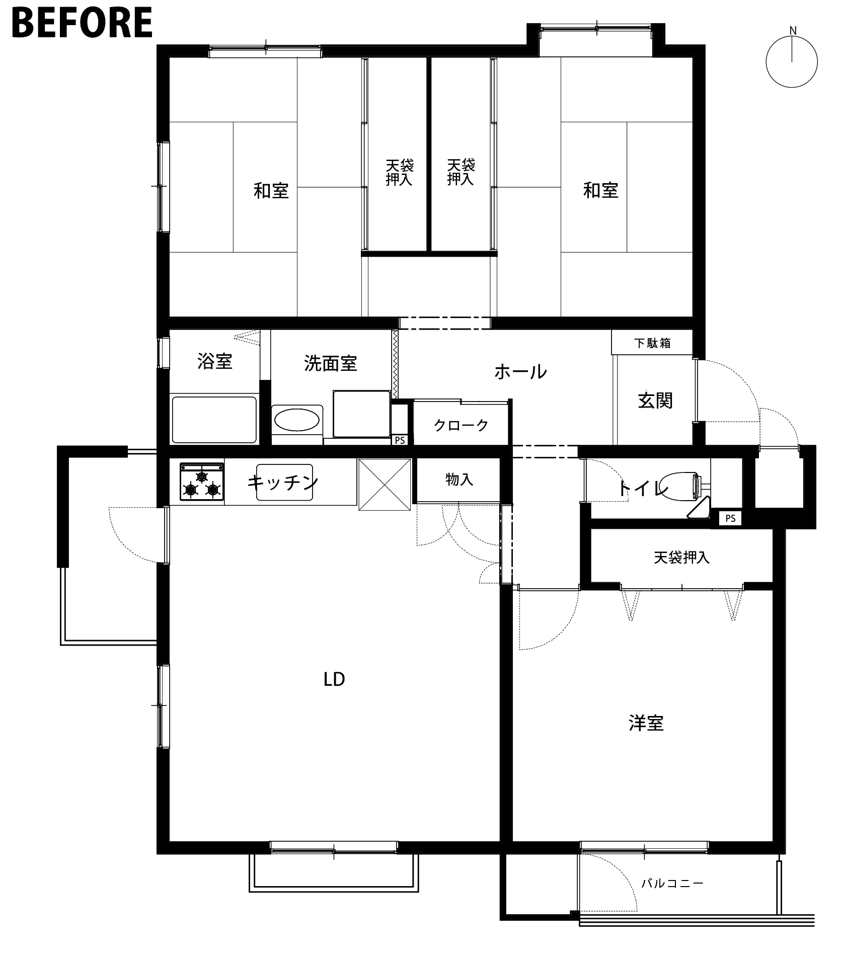 ご家族の生活の中心という、リビング中心の間取りに再構築しました。