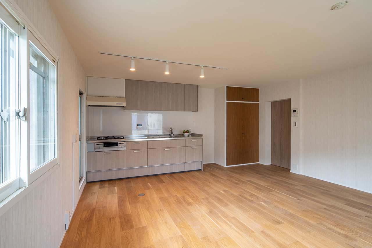 梁の存在を感じさせないラインの整ったデザインで、空間全体に統一感と広がりをもたらしました。
