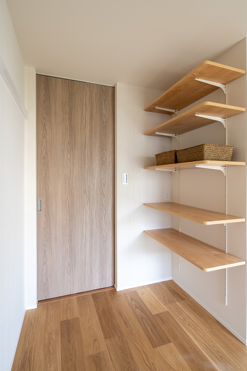 お打ち合わせの中で生まれた「思い出を残したい」というお客様の想いを叶えるため、LDK入口脇の物入のみ既存を再利用しました。
