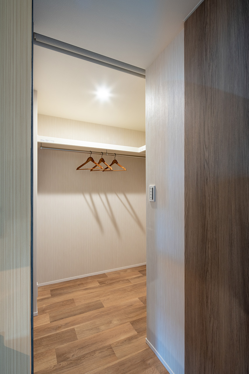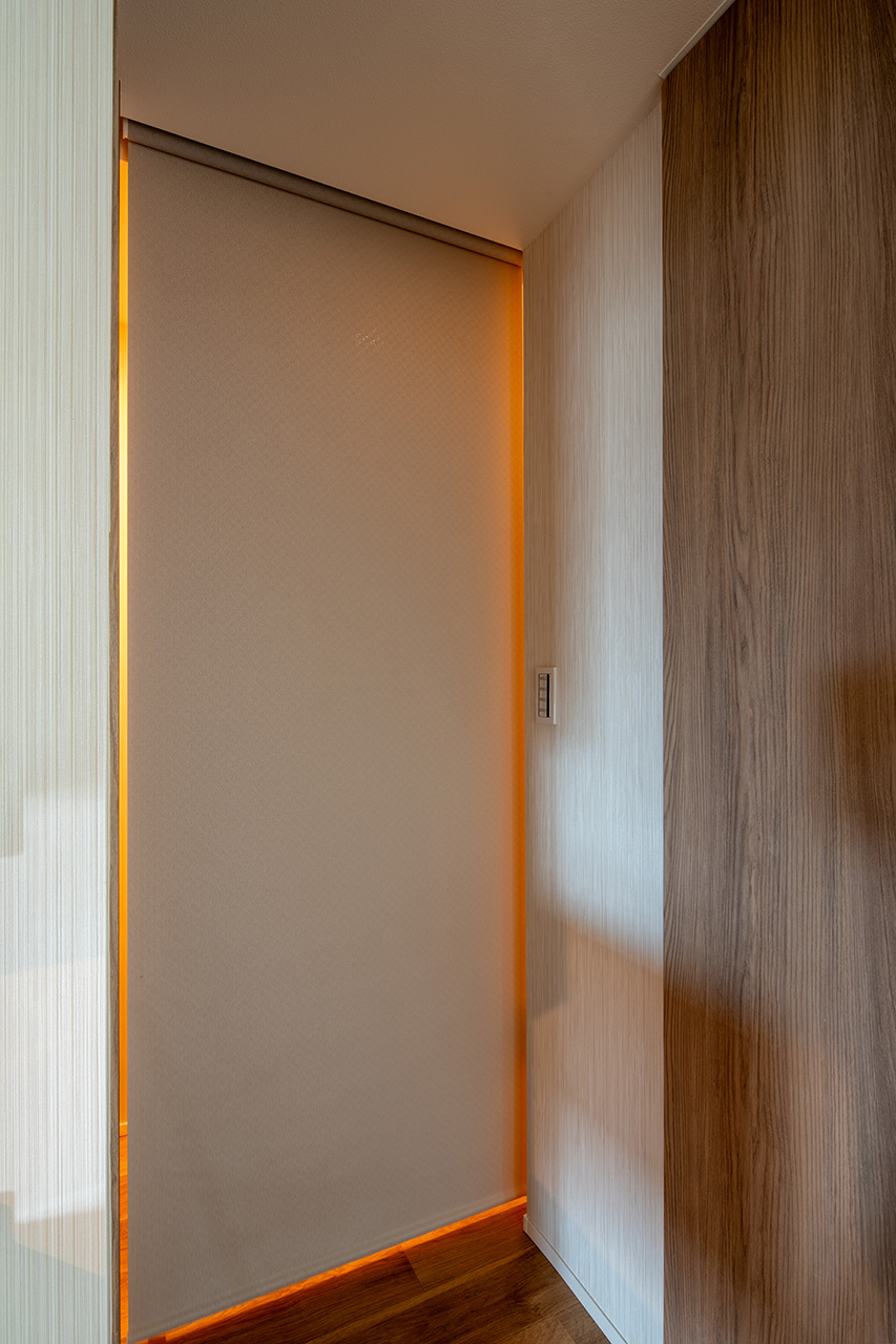 出入りのしやすさを重視し、ウォークインクローゼットの入口にはロールスクリーンを採用。